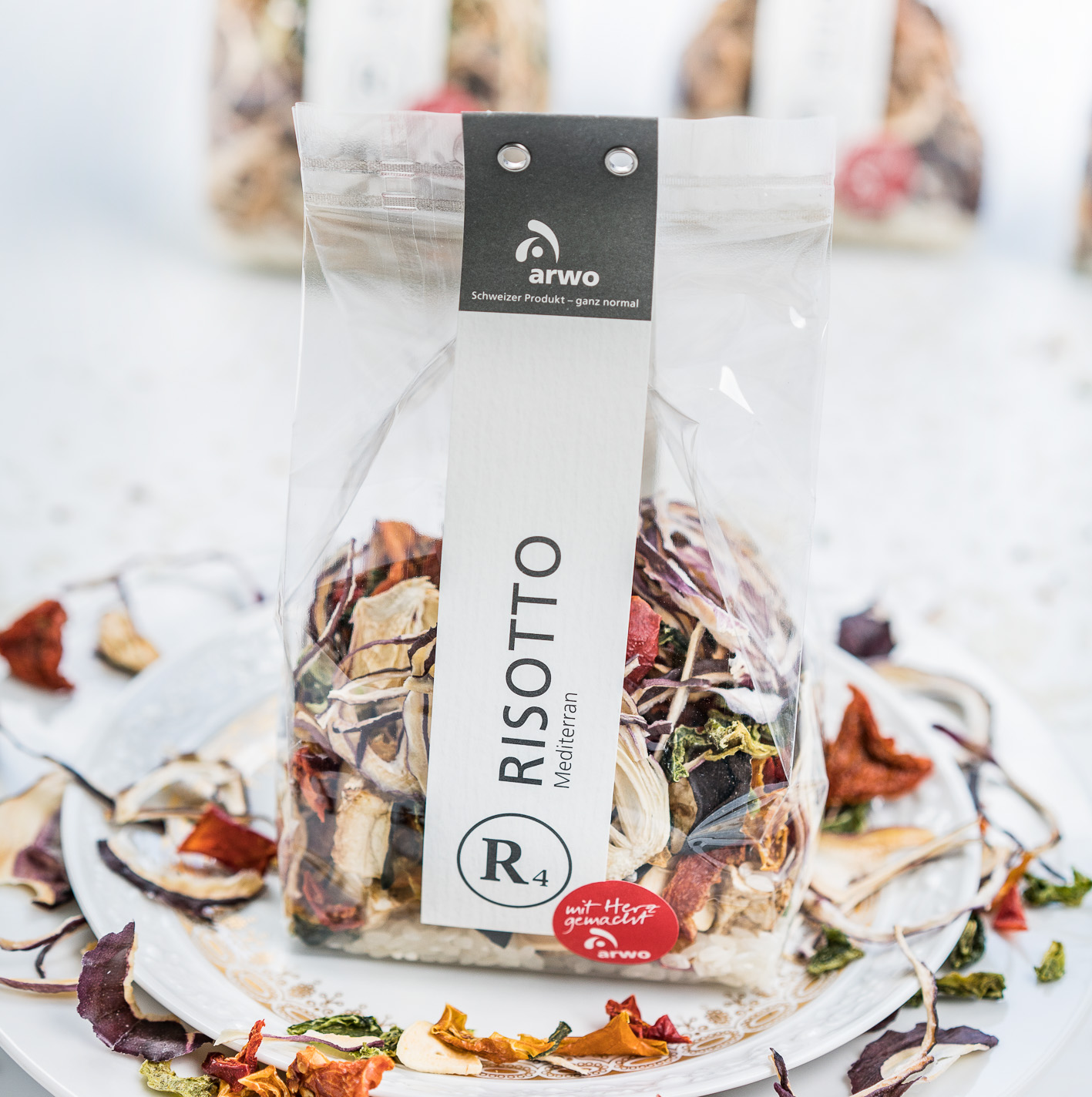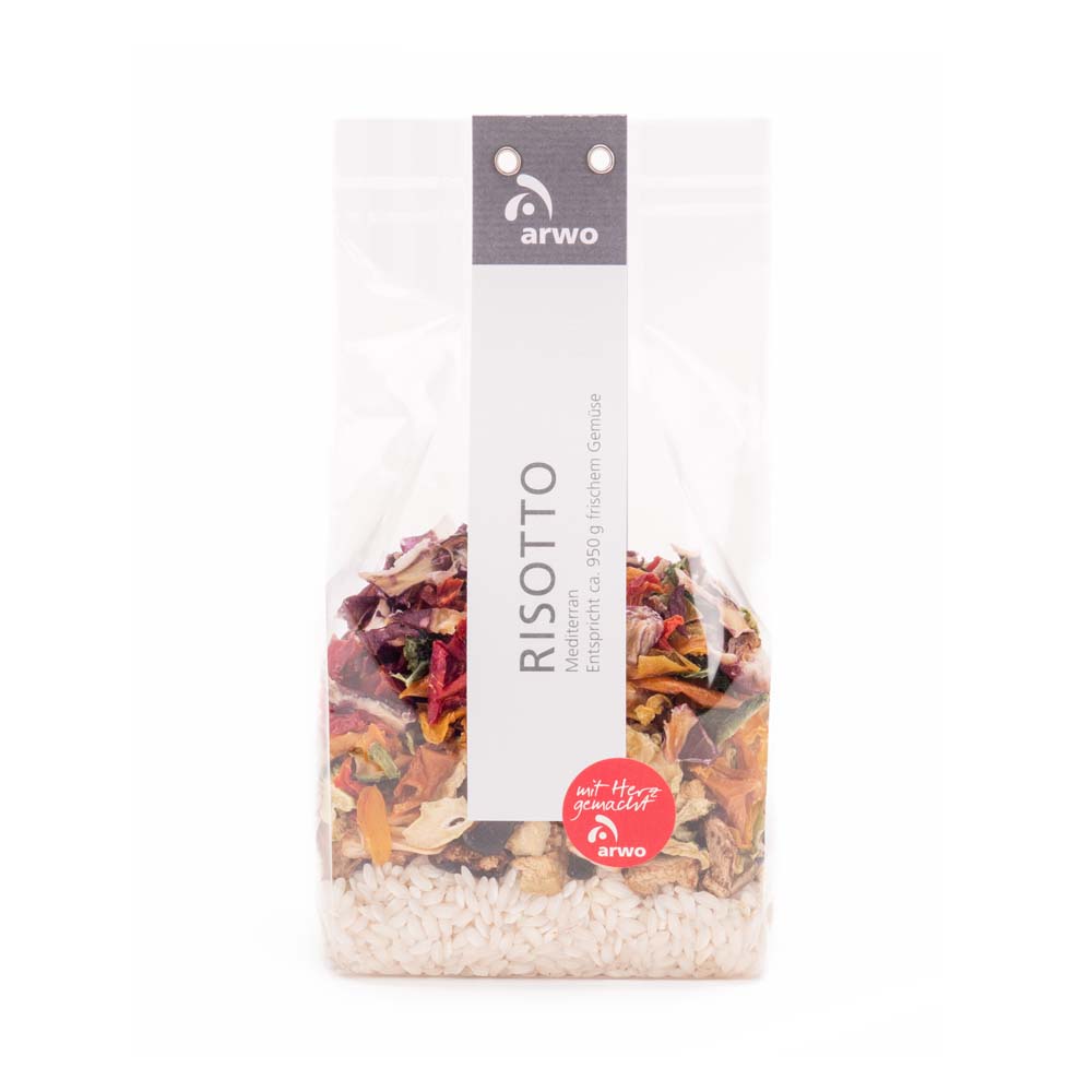 Anwendung:Risottomischung im Öl andünsten, bis der Reis glasig ist. Mit Weisswein ablöschen, einkochen lassen. Nach und nach Brühe beigeben, den Reis kochen bis er cremig und al dente ist (ca. 20 Minuten). Temperatur herunterschalten, Risotto ziehen lassen und mit wenig Pfeffer, Butter und Parmesan abschmecken. Für 2 - 4 Personen (Hauptmahlzeit / Beilage).